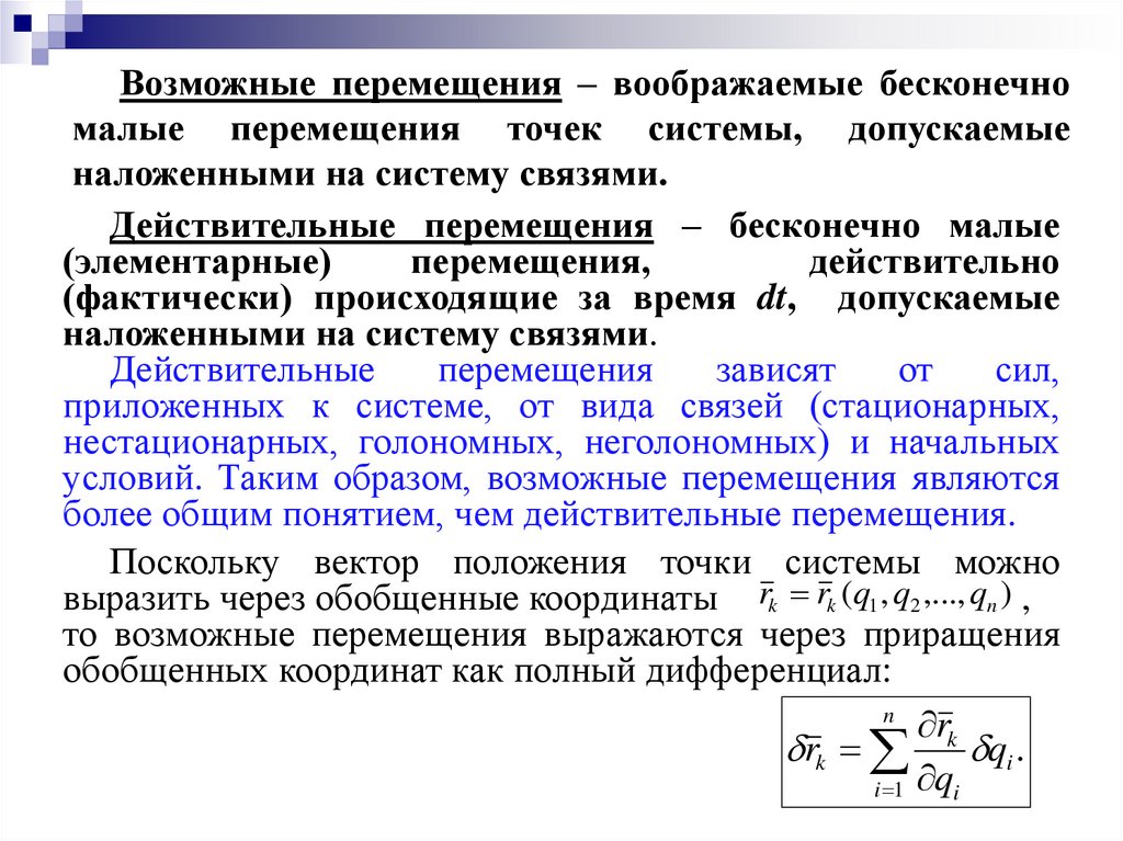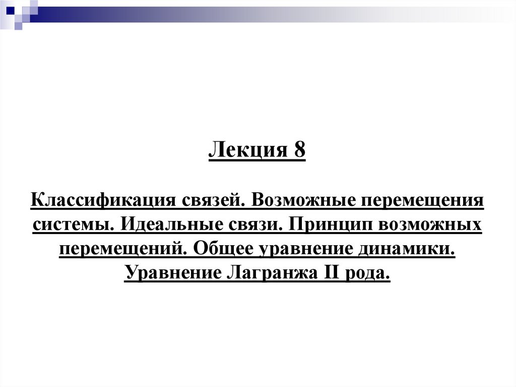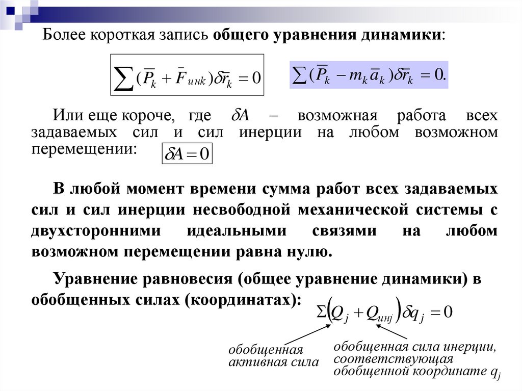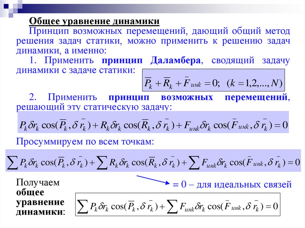 Общее уравнение динамикиПринцип возможных перемещений, дающий общий метод