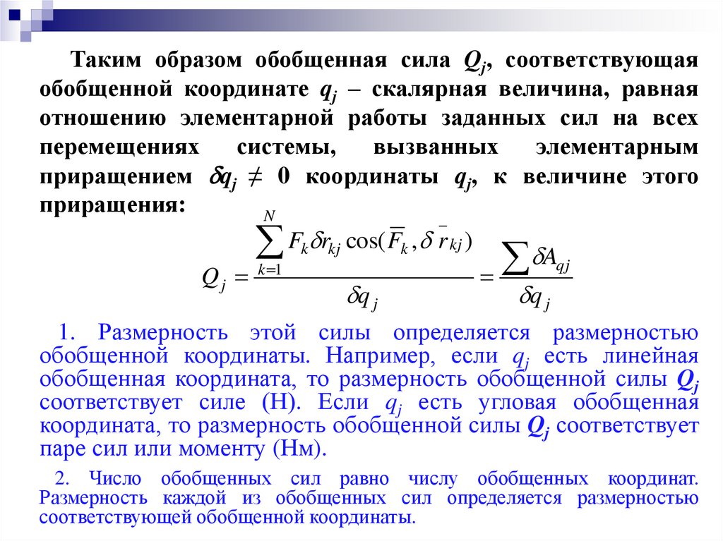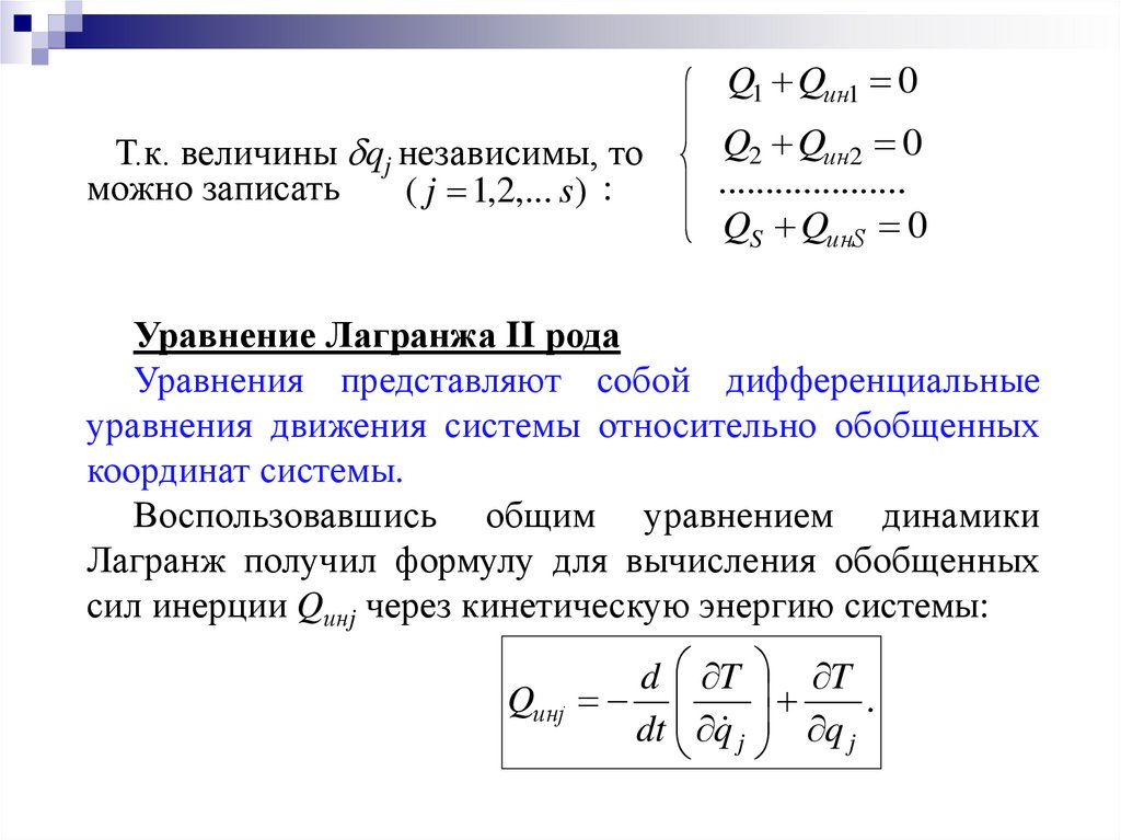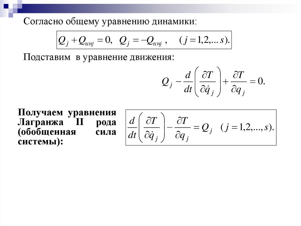 Согласно общему уравнению динамики:Q j Qинj 0, Q j Qинj ,