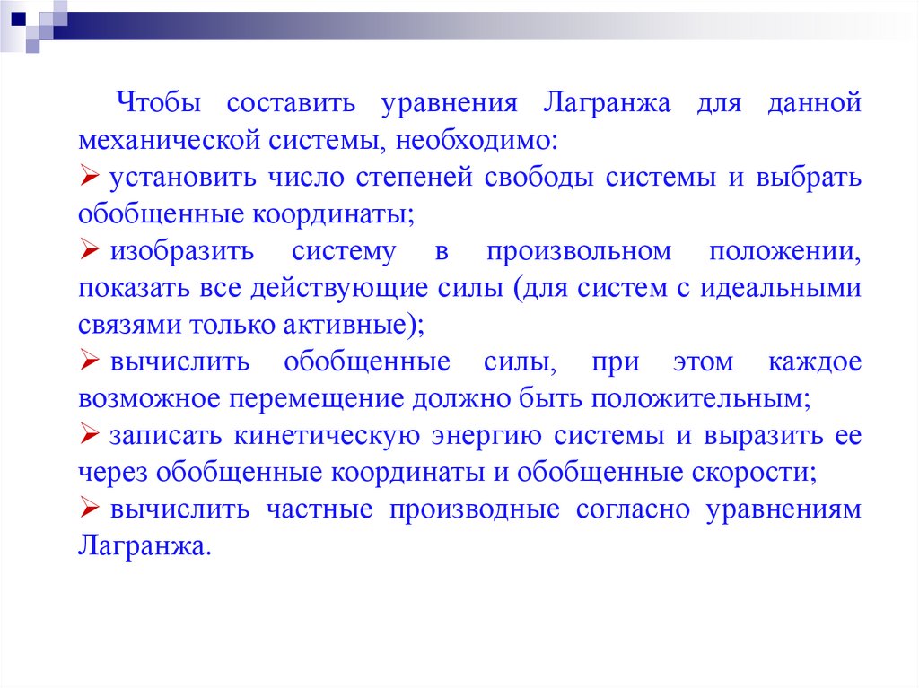 Чтобы составить уравнения Лагранжа для данноймеханической системы, необходимо: