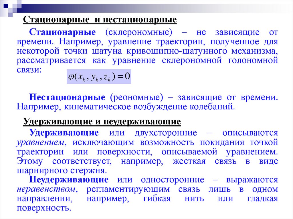 Стационарные и нестационарныеСтационарные (склерономные) – не зависящие от