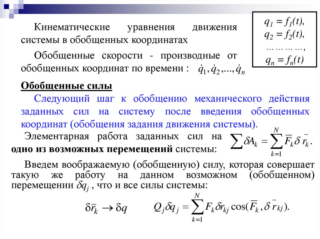 выразить через обобщенные координаты rk rk (q1 , q2 ,..., qn ) ,
