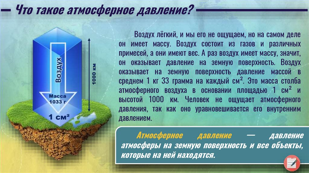 СЕГОДНЯ ВЫ УЗНАЕТЕ:Что такое атмосферное давление?