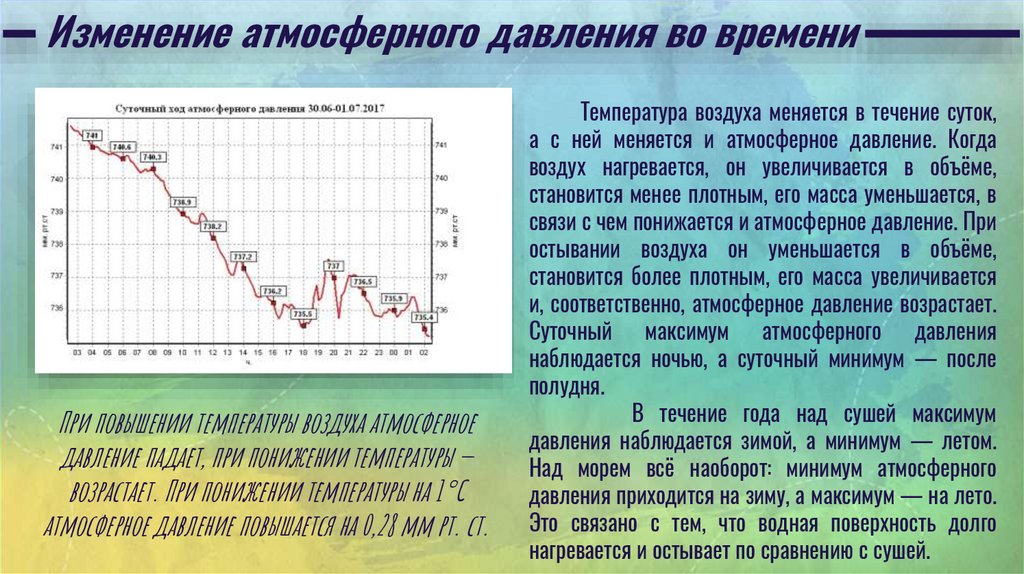 Изменение атмосферного давления во времениПри повышении температуры воздуха атмосферное