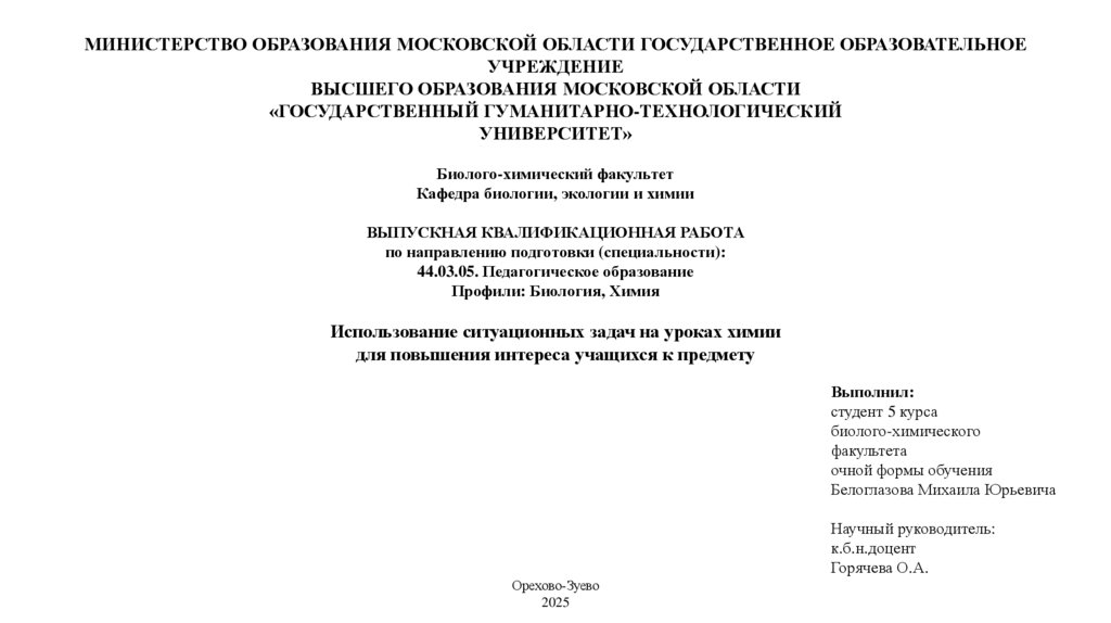 ВЫСШЕГО ОБРАЗОВАНИЯ МОСКОВСКОЙ ОБЛАСТИ