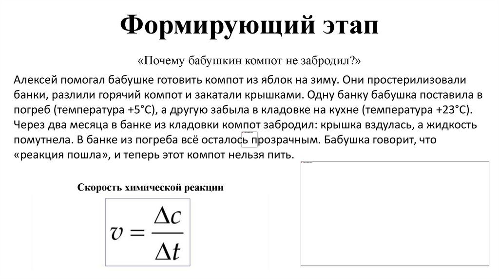 Формирующий этап«Почему бабушкин компот не забродил?»