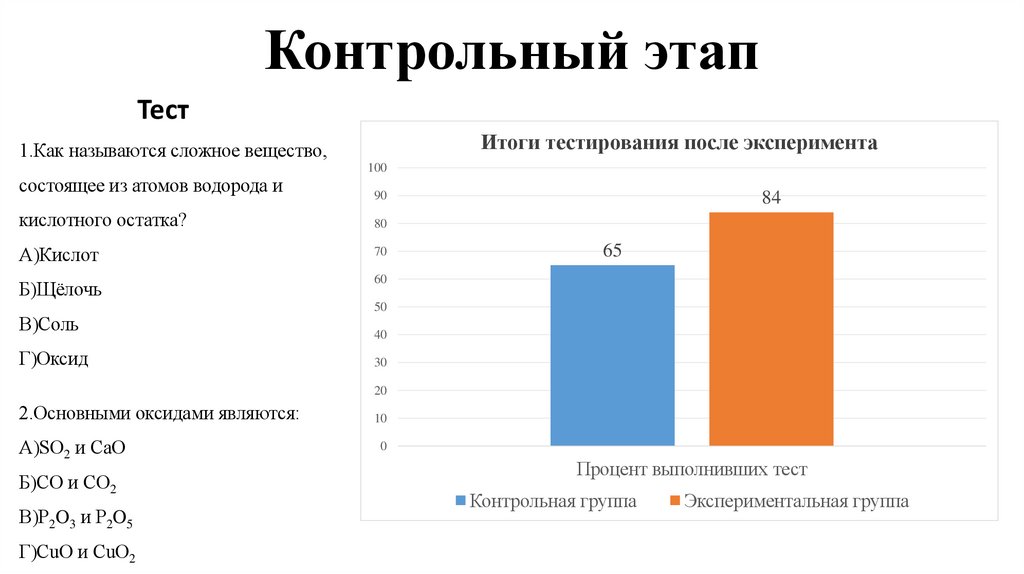 Итоги тестирования после эксперимента