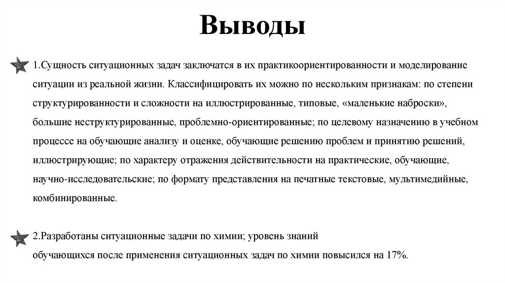 Выводы1.Сущность ситуационных задач заключатся в их практикоориентированности и моделирование
