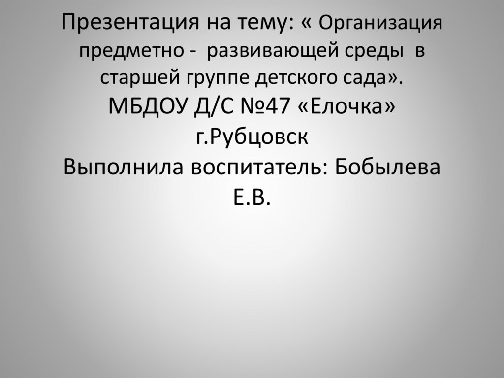 1. Презентация на тему: « Организация предметно - развивающей среды в старшей группе детского сада». МБДОУ Д/С №47 «Елочка»