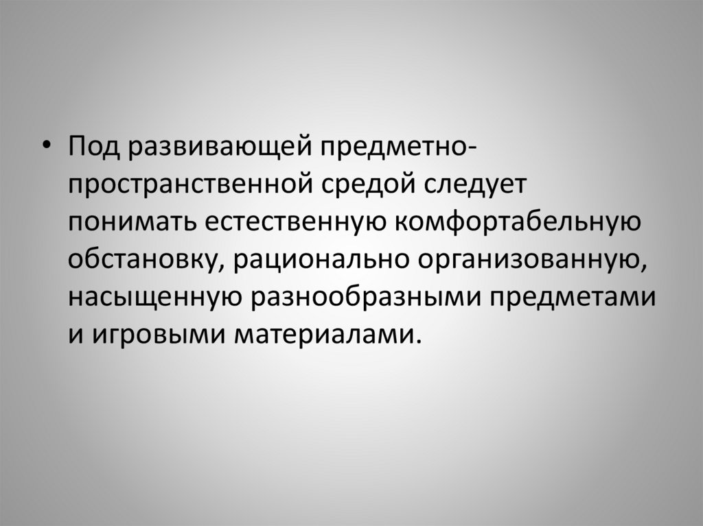 • Под развивающей предметнопространственной средой следуетпонимать естественную комфортабельную