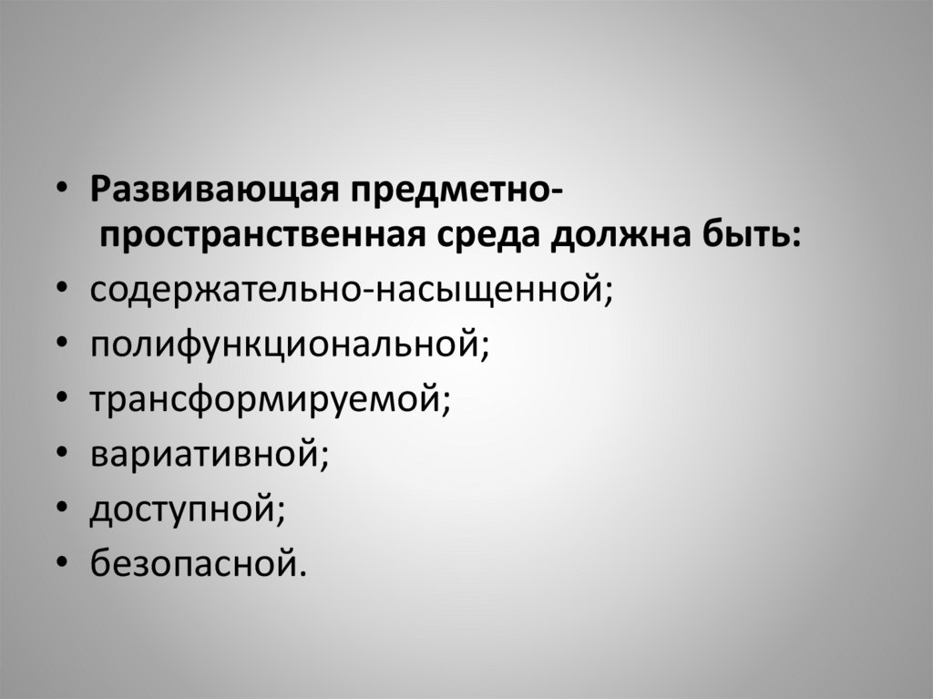 • Развивающая предметнопространственная среда должна быть:• содержательно-насыщенной;
