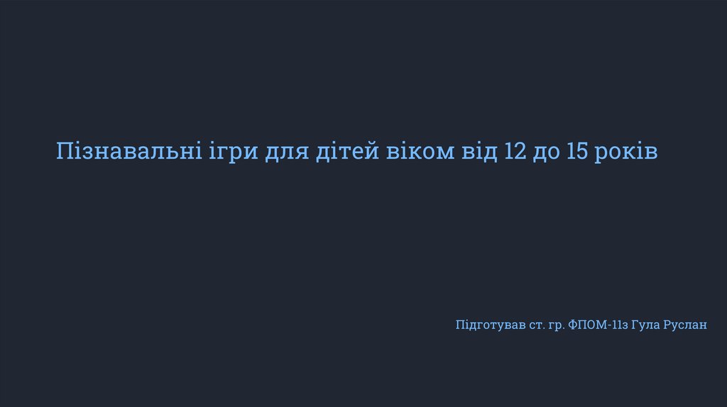 Пізнавальні ігри для дітей віком від 12 до 15 роківПідготував ст. гр. ФПОМ-11з Гула Руслан