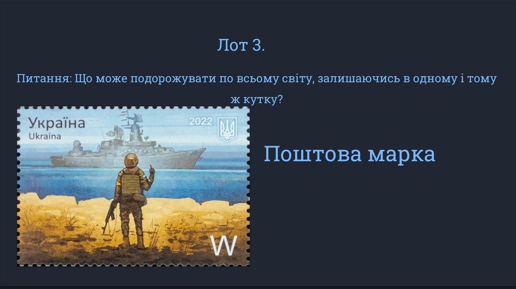 Лот 3.Питання: Що може подорожувати по всьому світу, залишаючись в одному і тому