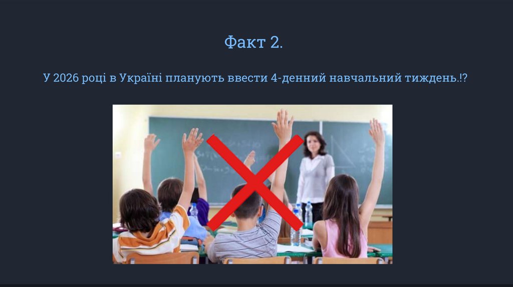 Факт 2.У 2026 році в Україні планують ввести 4-денний навчальний тиждень.!?