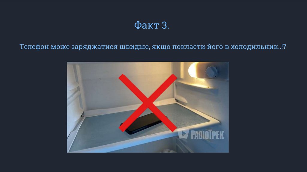 Факт 3.Телефон може заряджатися швидше, якщо покласти його в холодильник..!?