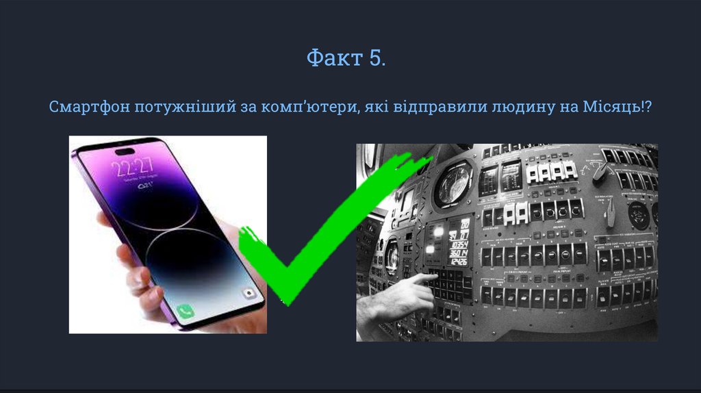 Факт 5.Смартфон потужніший за комп’ютери, які відправили людину на Місяць!?