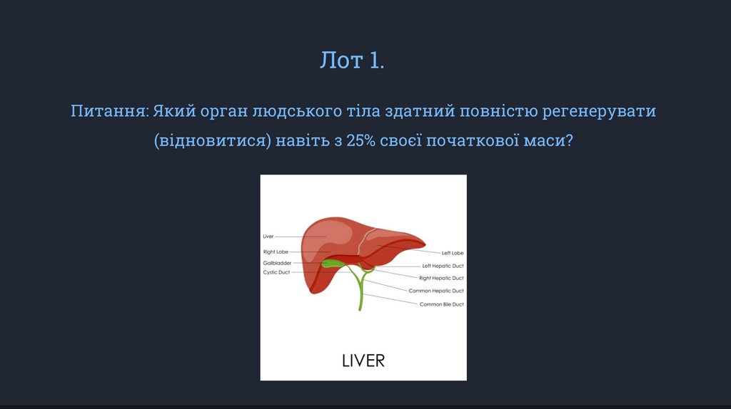 Лот 1.Питання: Який орган людського тіла здатний повністю регенерувати