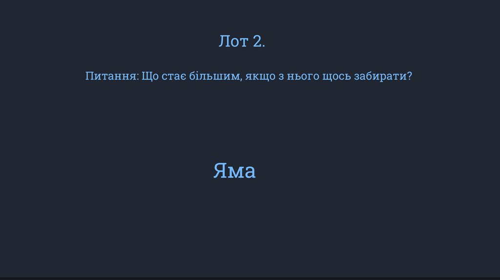 Лот 2.Питання: Що стає більшим, якщо з нього щось забирати?