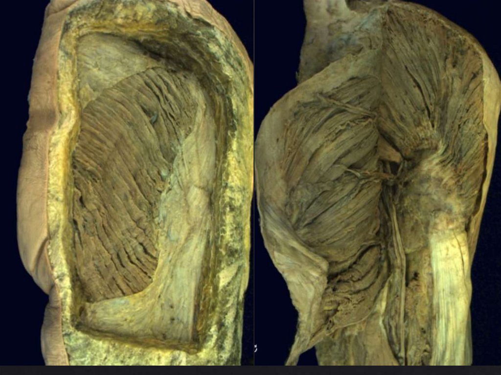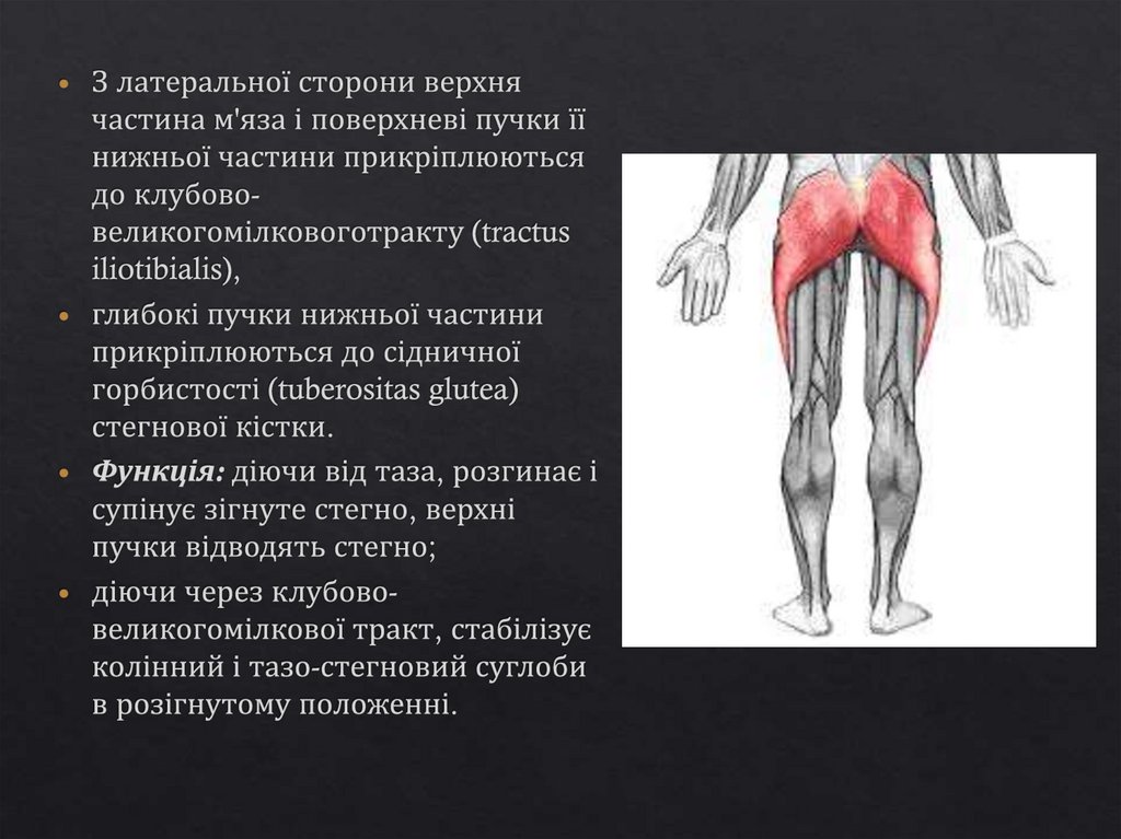 широкої фасцiї та великого сiдничного м’яза, має вертикальний напрямок волокон i