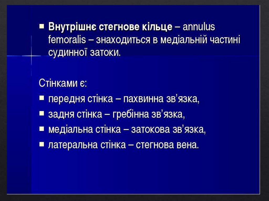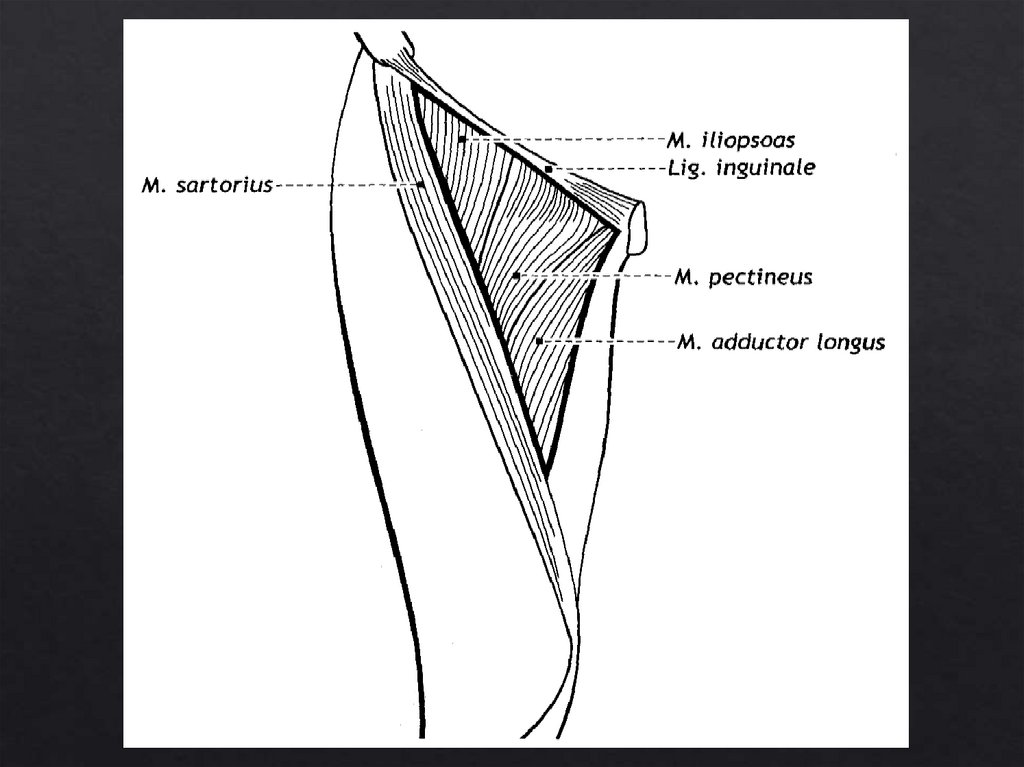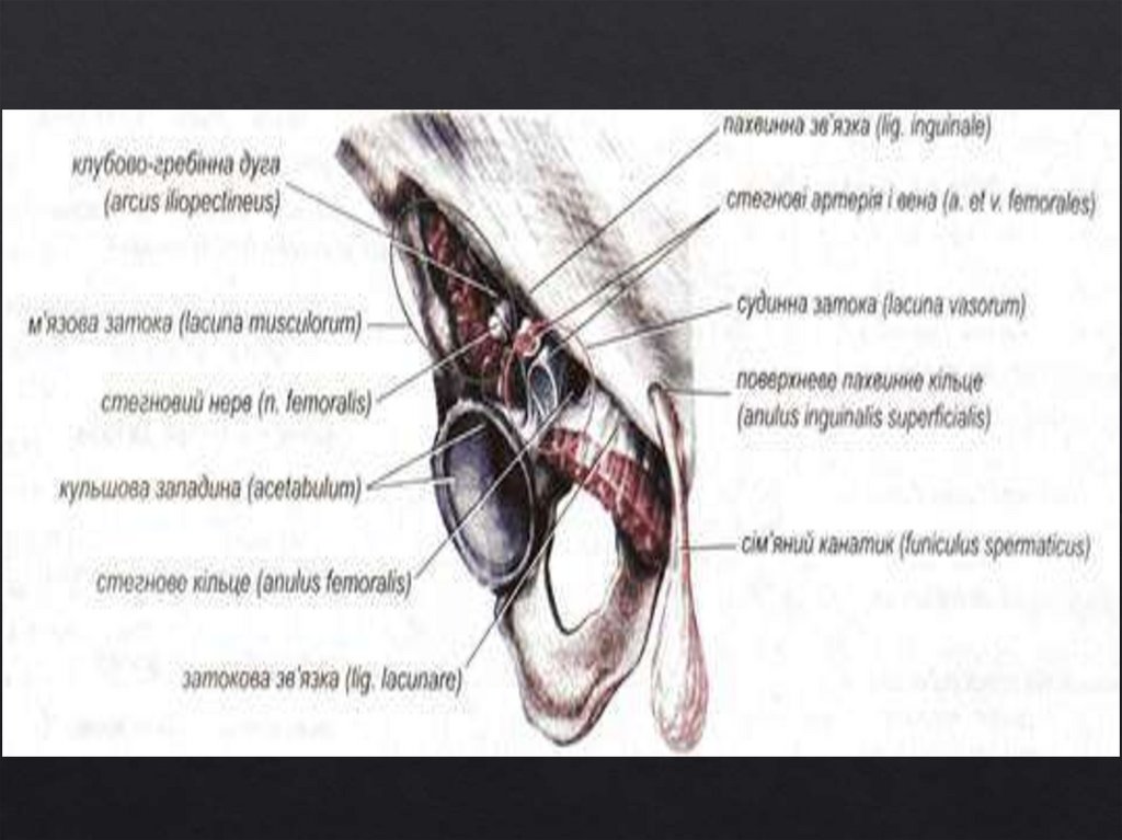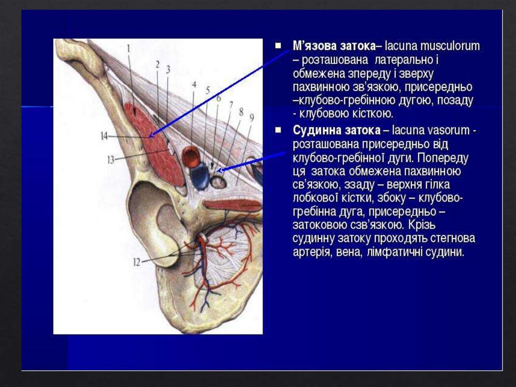 пiд пахвинною зв’язкою на м’язову та судинну затоки.
