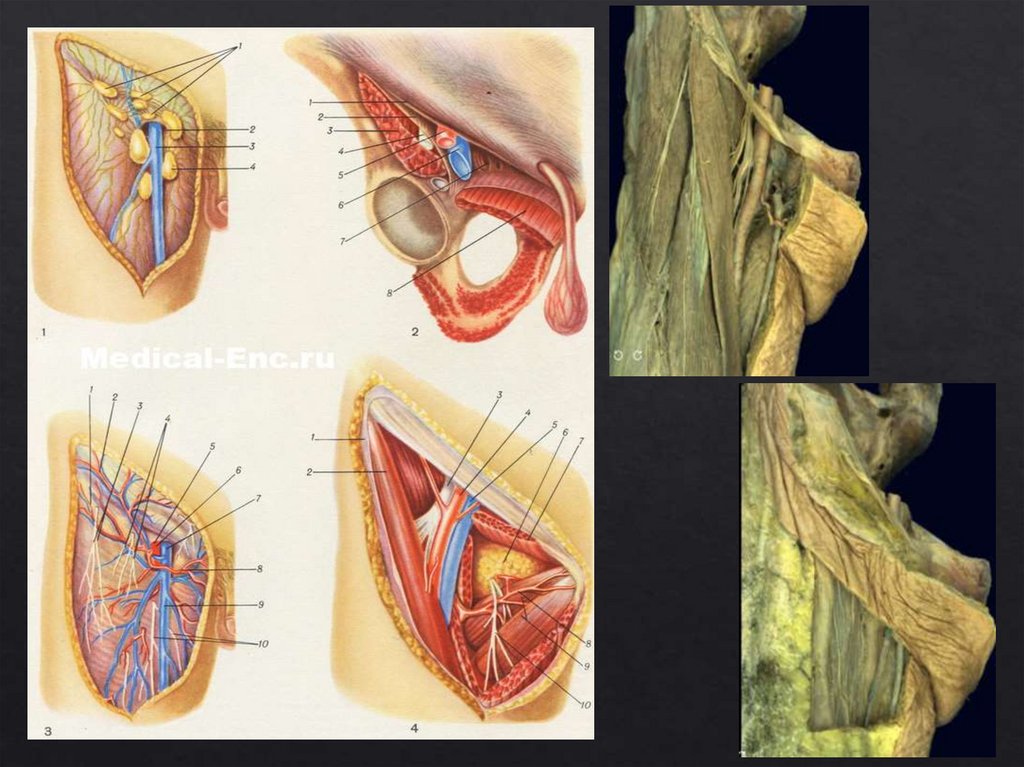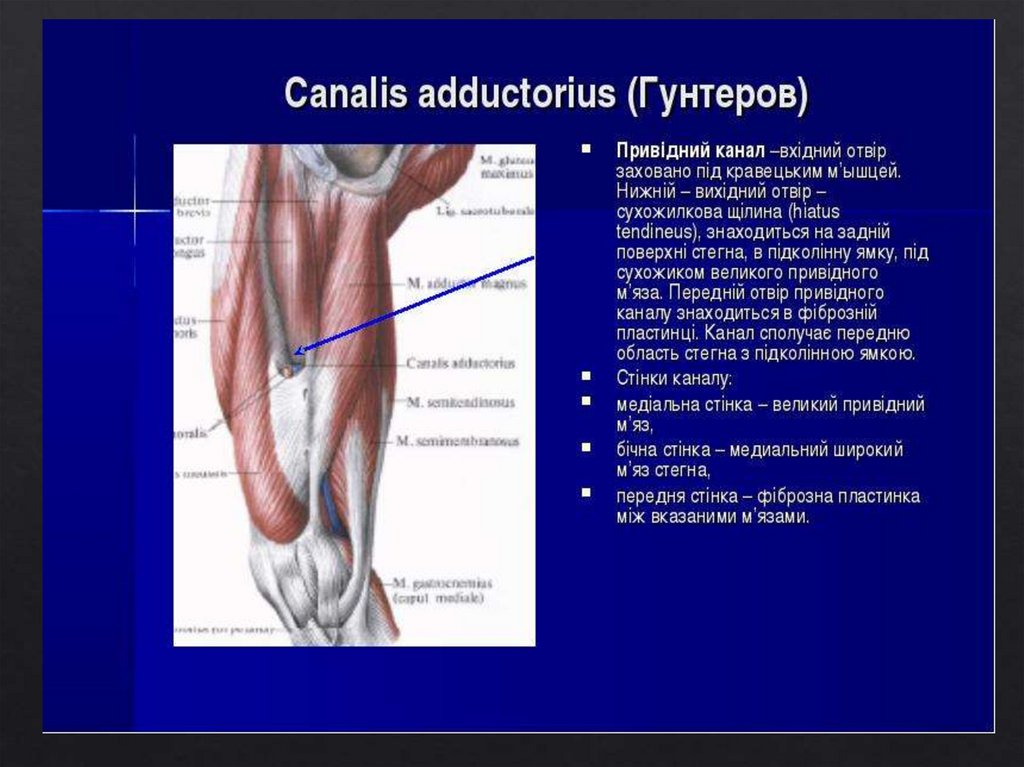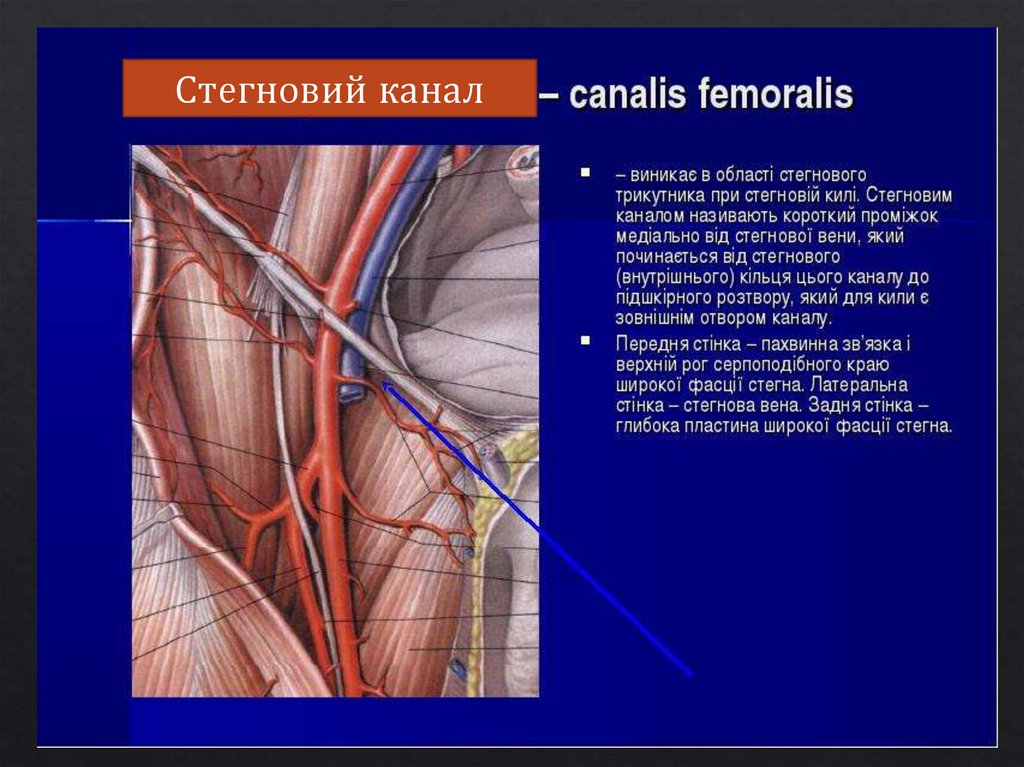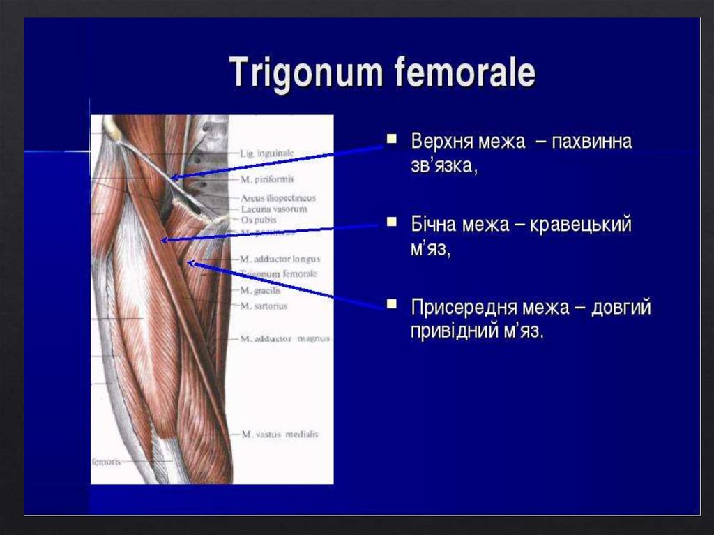 шари. Вони розмiщенi спереду та ззаду вiд стегнових судин (стегнової артерiї та стегнової