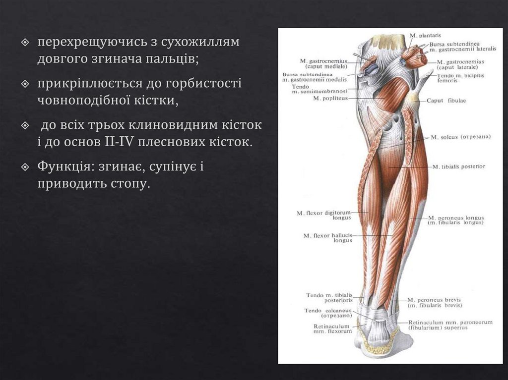 присередньої кісточки великогомілкової кістки до присередньої поверхнi п’яткової кiстки.