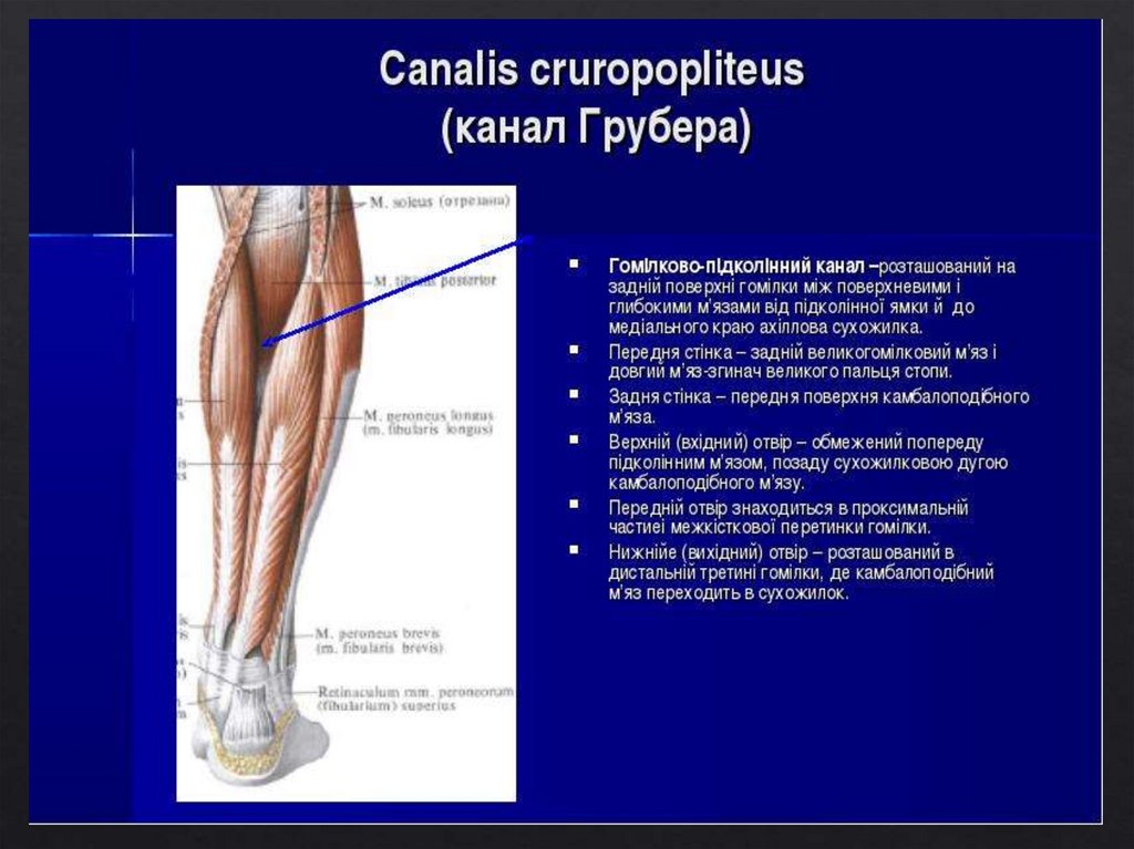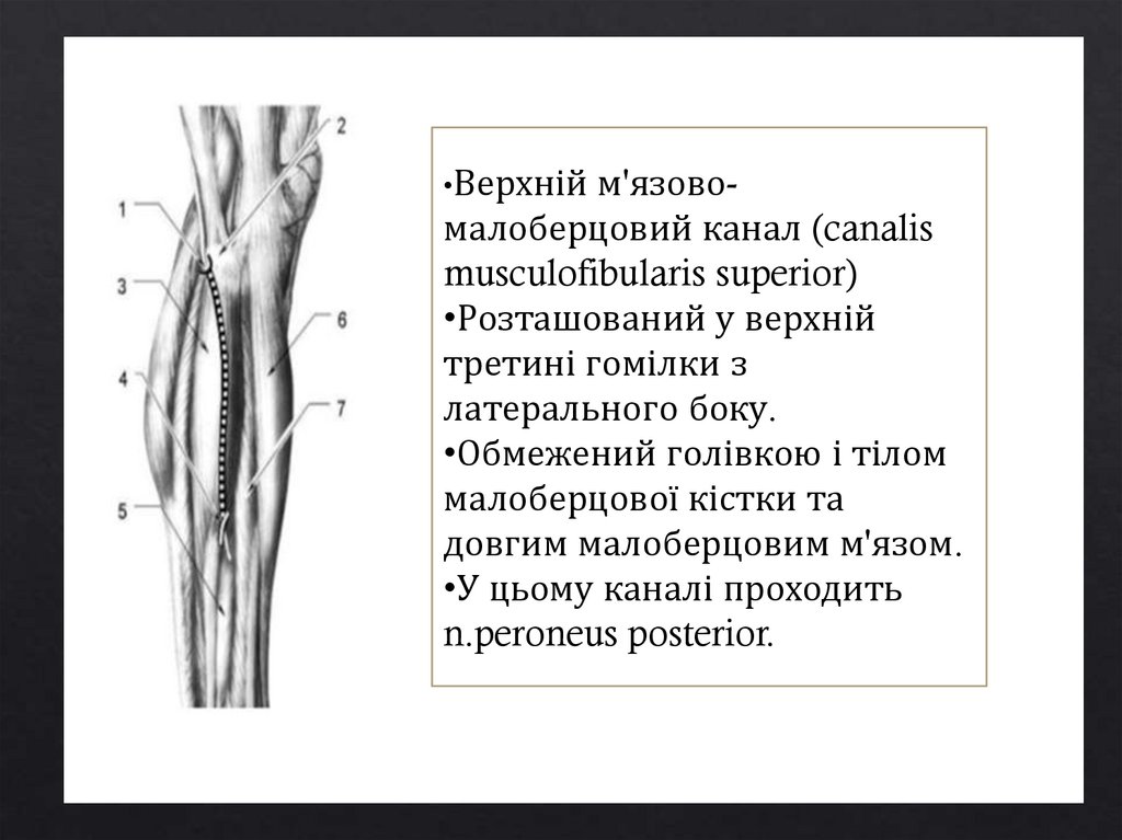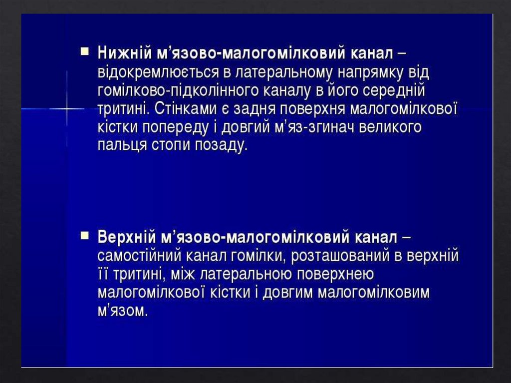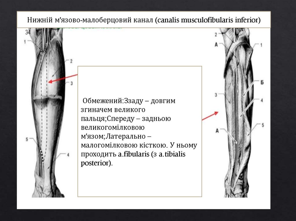 Нижній м'язово-малоберцовий канал (canalis musculofibularis inferior)Обмежений:Ззаду – довгим