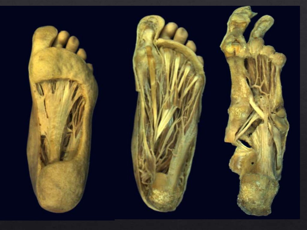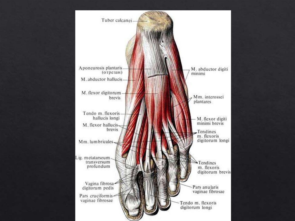 вплiтаються в стiнки волокнистих пiхов пальцiв. Вiд пiдошвового апоневрозу вертикально