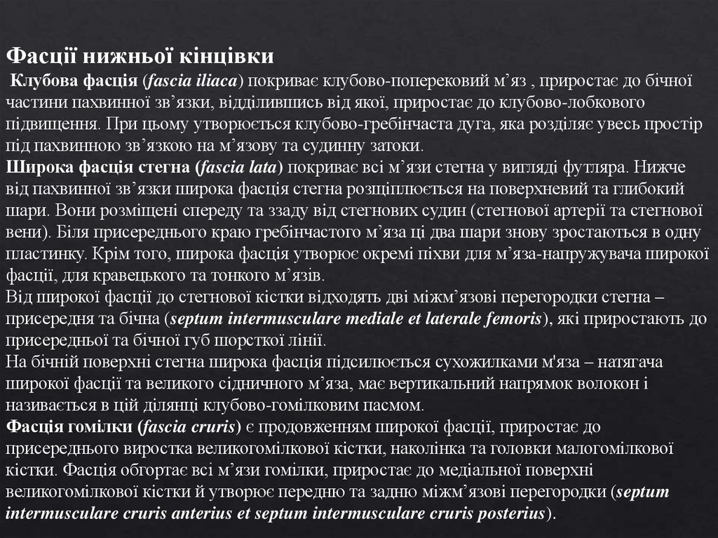 пластинку. Крiм того, широка фасцiя утворює окремi пiхви для м’яза-напружувача широкої