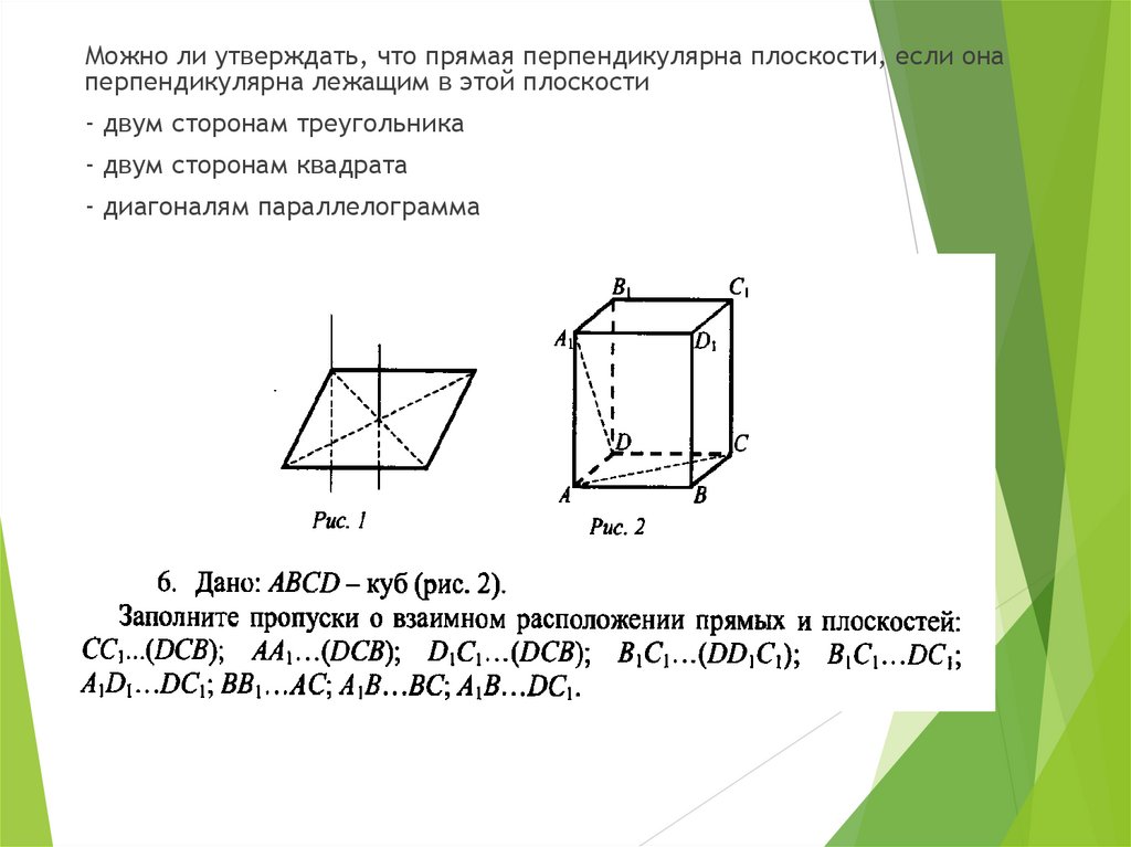 1. Теорема о прямой, перпендикулярной плоскости