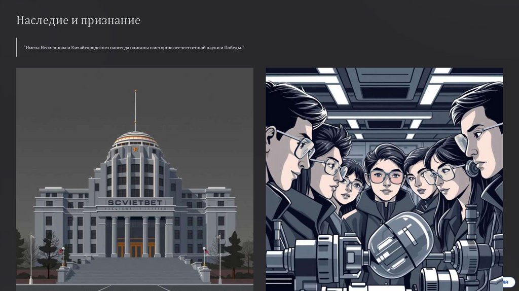 Наследие и признание"Имена Несмеянова и Китайгородского навсегда вписаны в историю отечественной науки и Победы."
