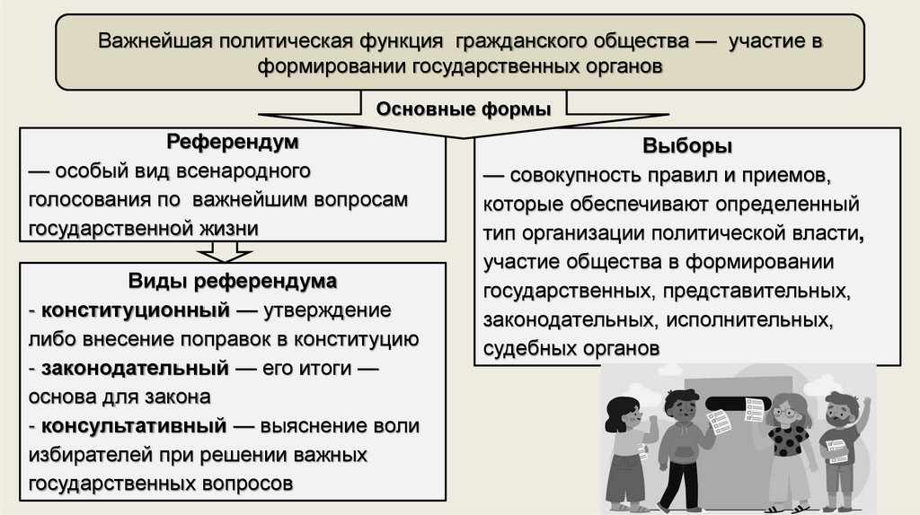 Важнейшая политическая функция гражданского общества — участие вформировании государственных органов