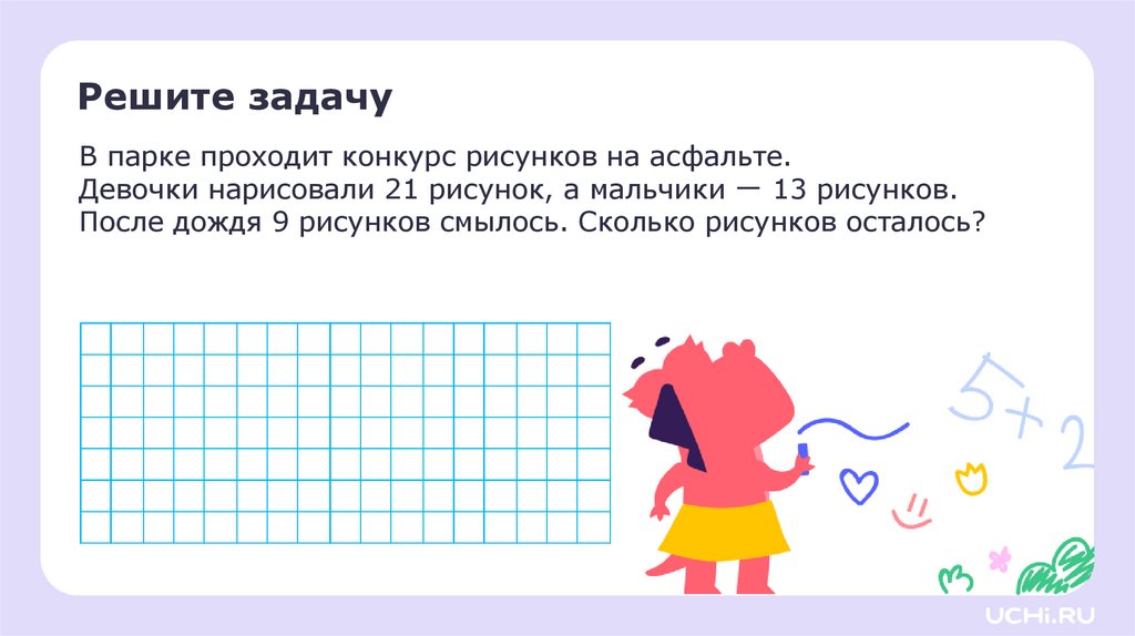 Решите задачуВ парке проходит конкурс рисунков на асфальте.