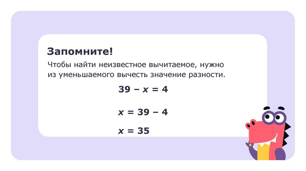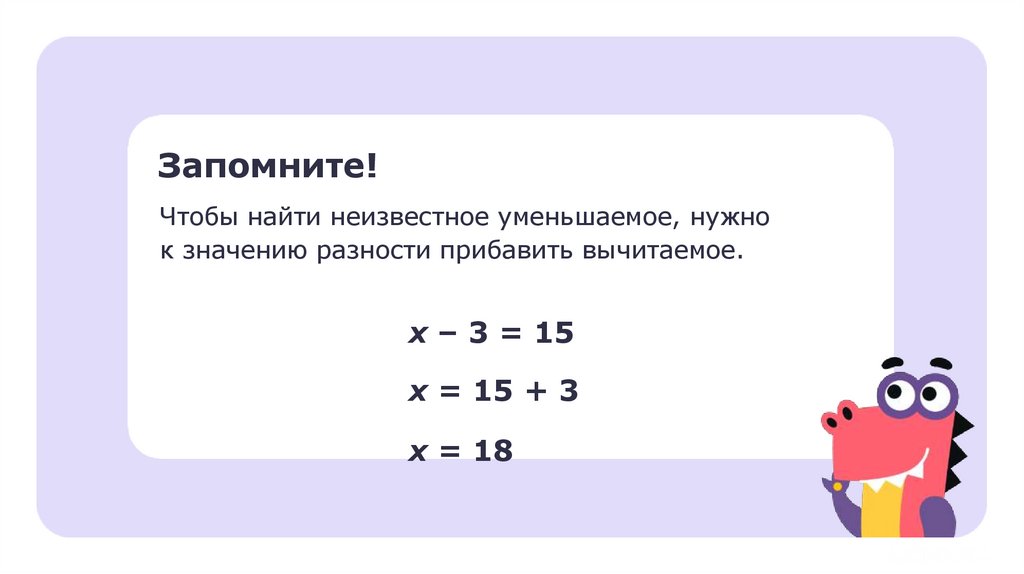 Запомните!Чтобы найти неизвестное уменьшаемое, нужно