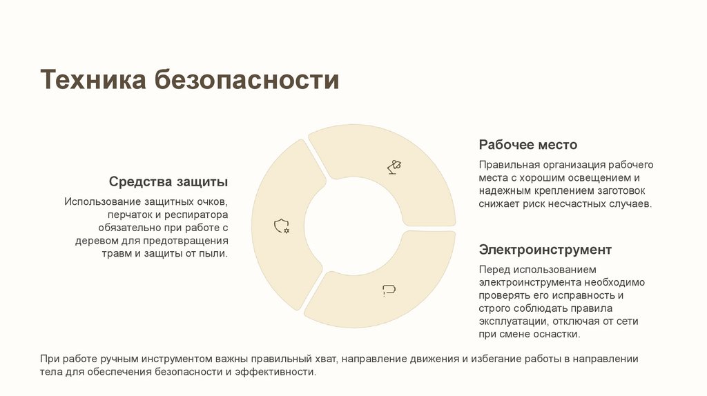 При работе ручным инструментом важны правильный хват, направление движения и избегание работы в направлении