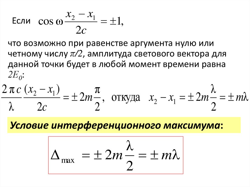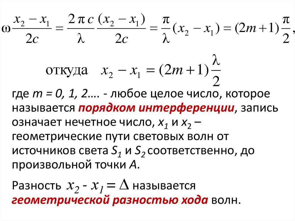 порядка интерференции m. Таким образом, при освещении щелей