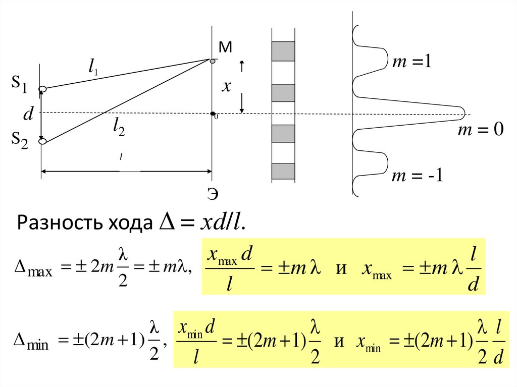Разность хода Δ = хd/l.