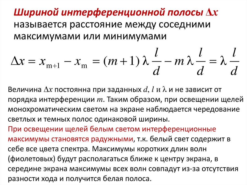 Шириной интерференционной полосы Δхназывается расстояние между соседними