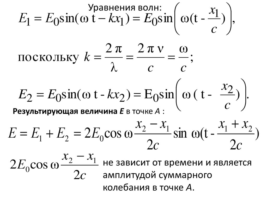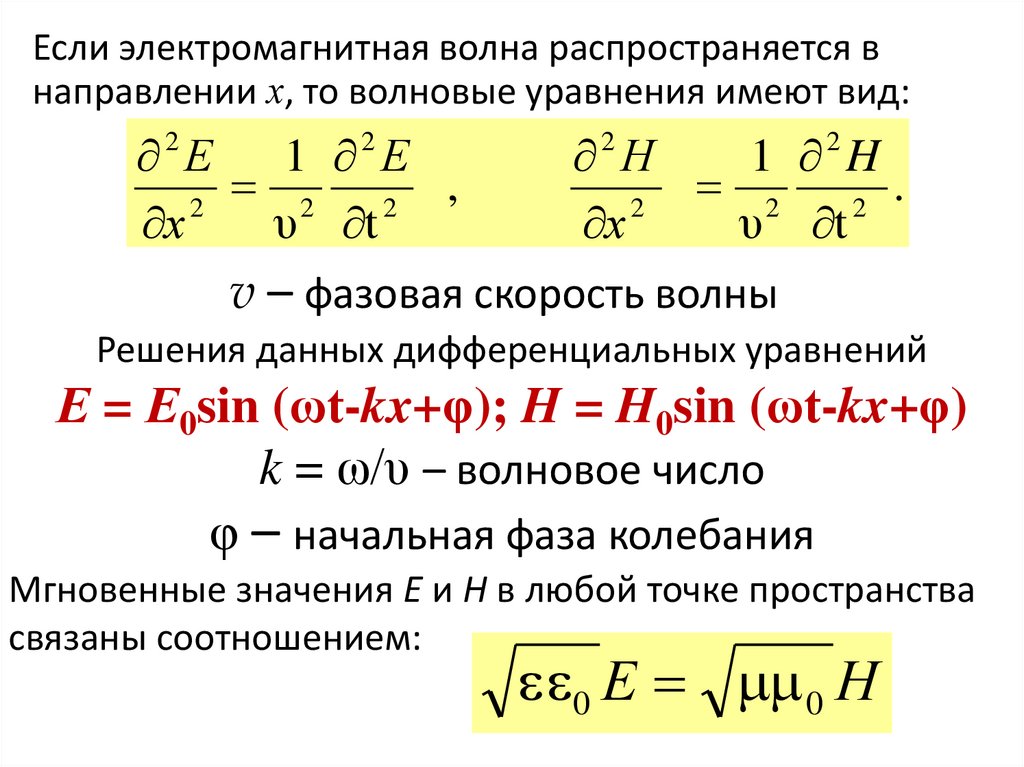 Если электромагнитная волна распространяется внаправлении х, то волновые уравнения имеют вид:
