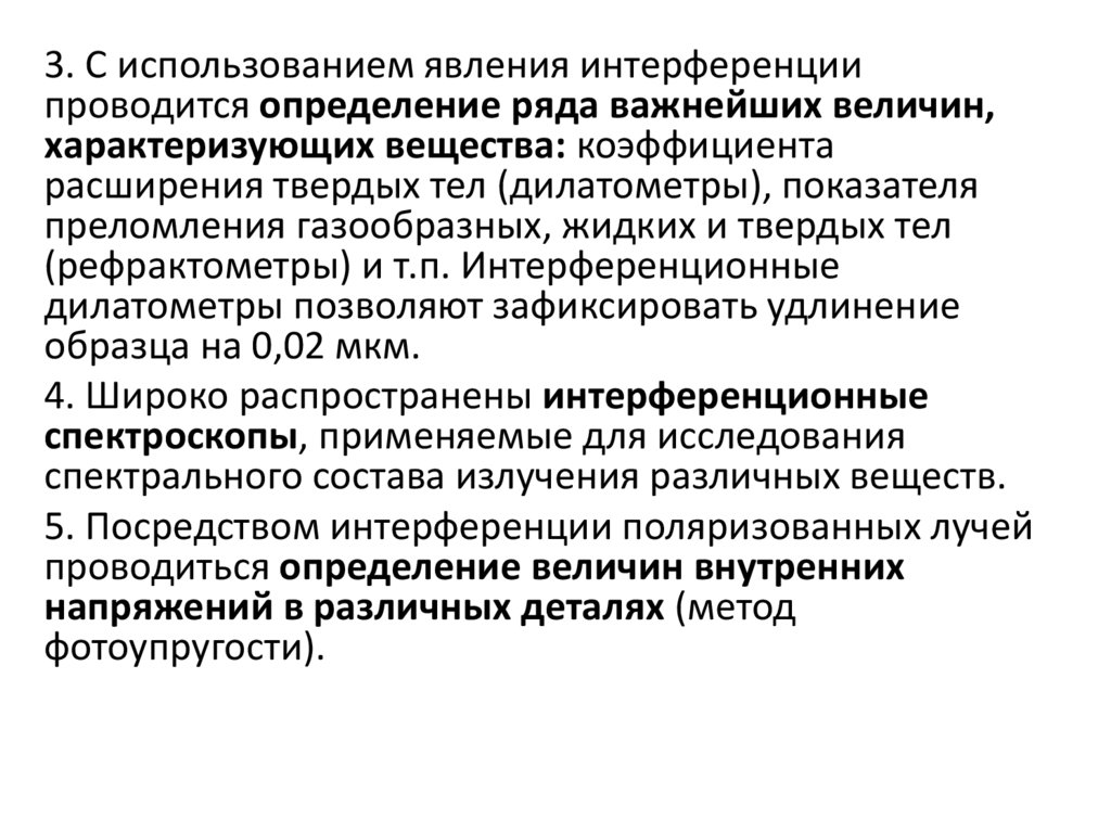 3. С использованием явления интерференциипроводится определение ряда важнейших величин,
