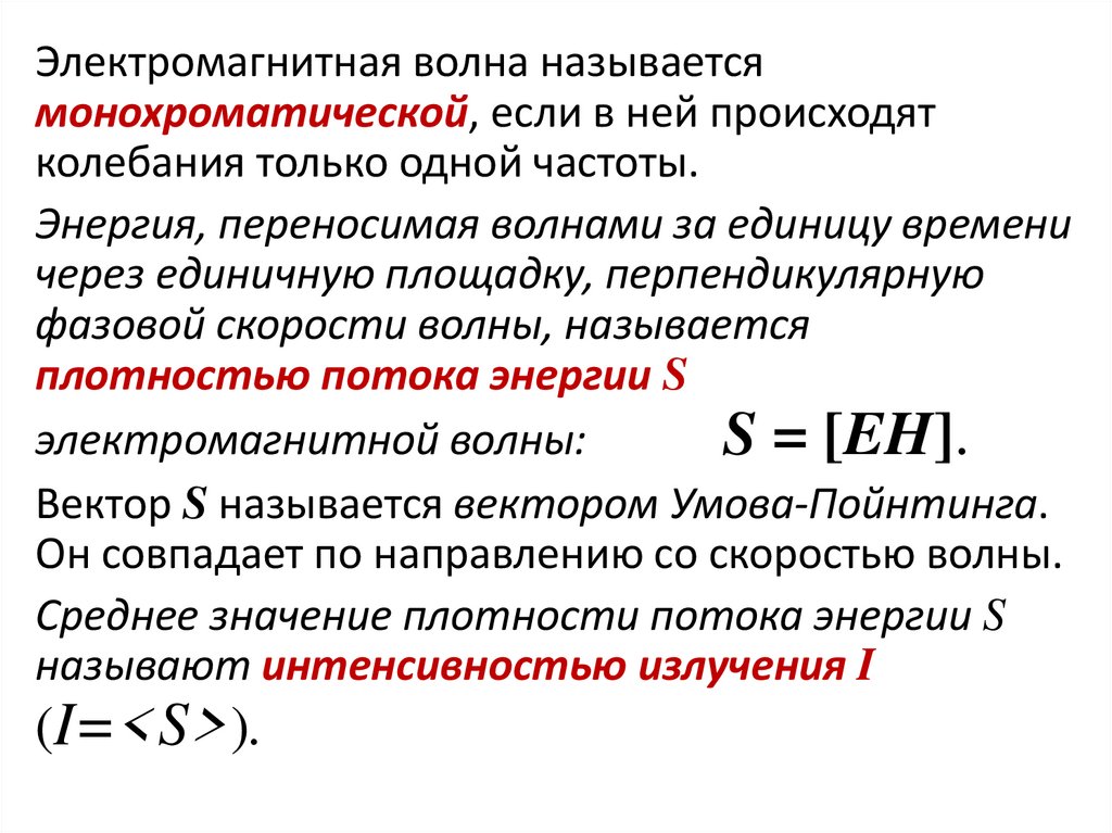 Вектор S называется вектором Умова-Пойнтинга.