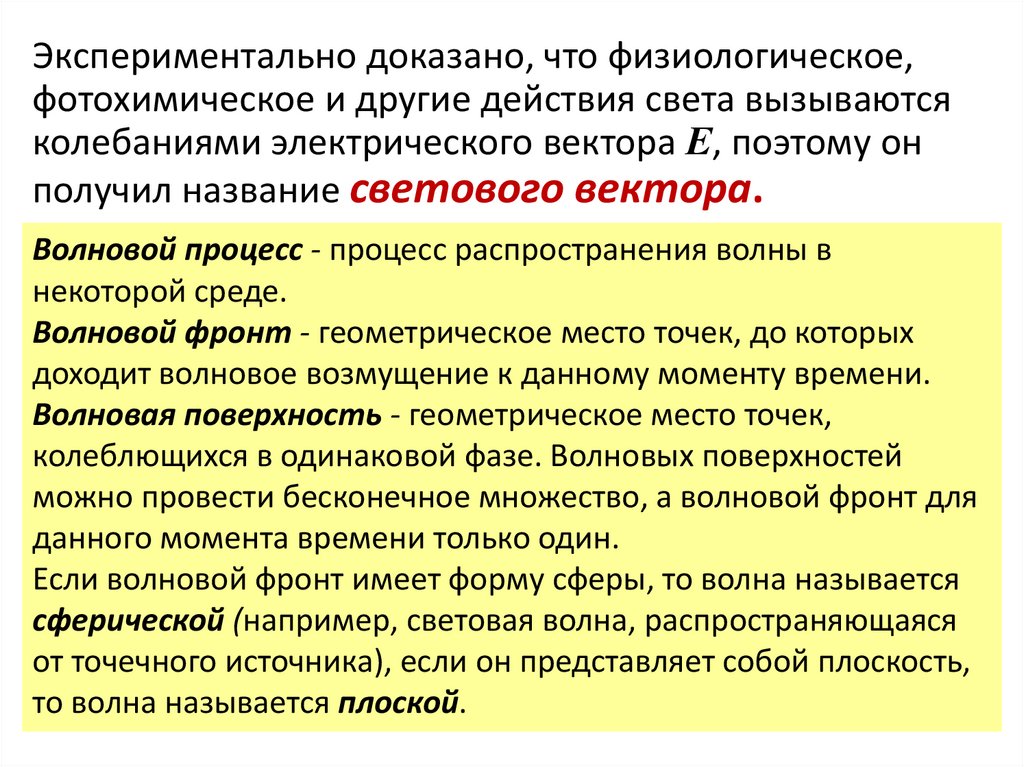 Экспериментально доказано, что физиологическое,фотохимическое и другие действия света вызываются
