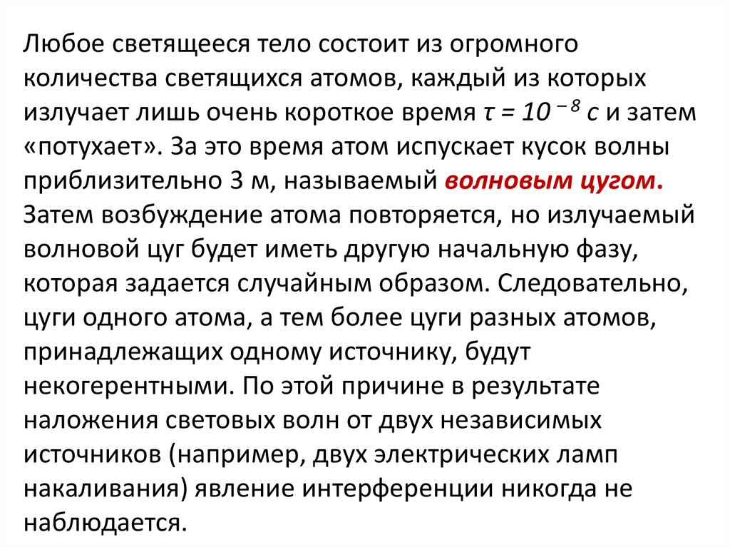 Любое светящееся тело состоит из огромногоколичества светящихся атомов, каждый из которых