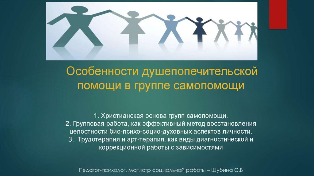 1. Особенности душепопечительской помощи в группе самопомощи 1. Христианская основа групп самопомощи. 2. Групповая работа, как