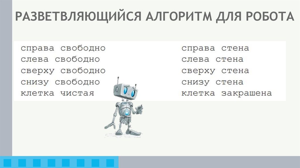 РАЗВЕТВЛЯЮЩИЙСЯ АЛГОРИТМ ДЛЯ РОБОТА8.