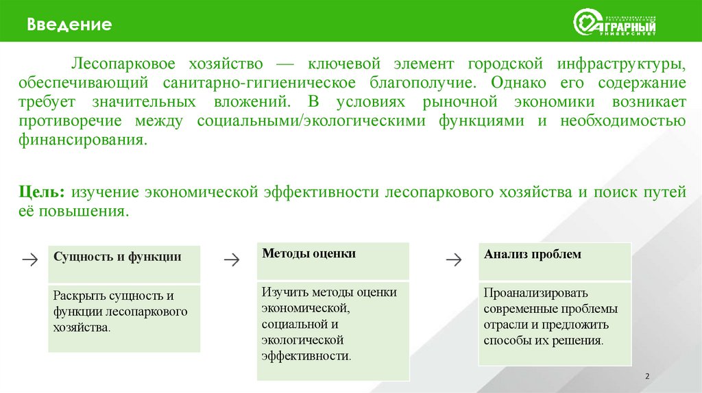ВведениеЛесопарковое хозяйство — ключевой элемент городской инфраструктуры,
