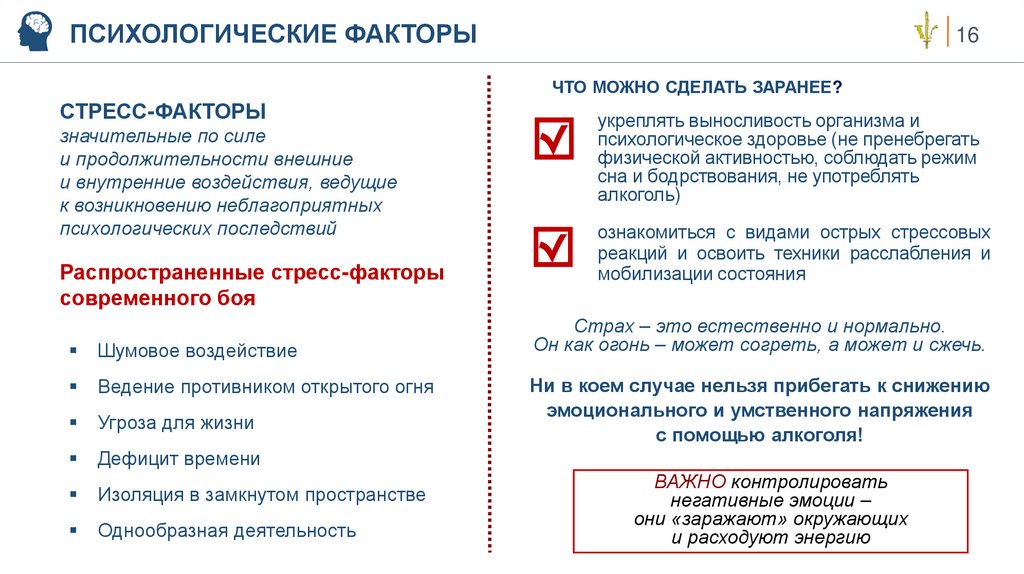 факторы боевого стресса, виды последствий длительного влияния стрессфакторов, а также приемы оказания первой допсихологической помощи