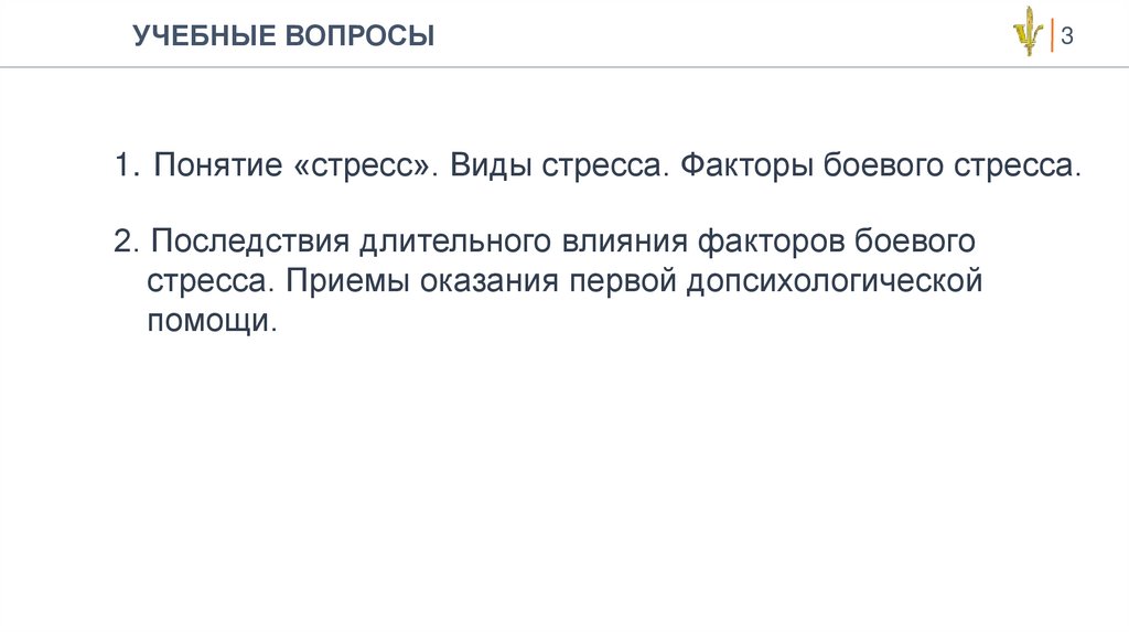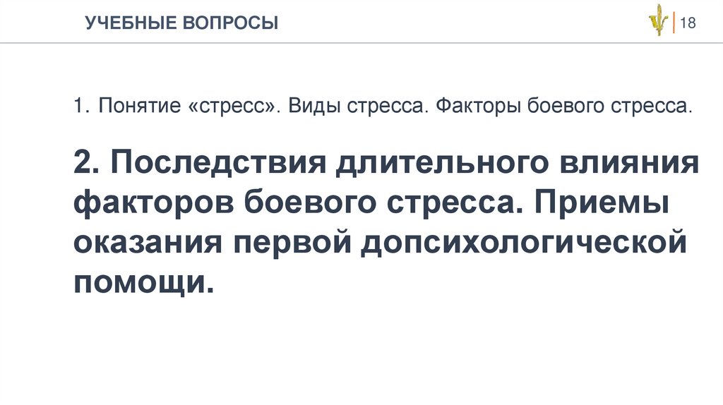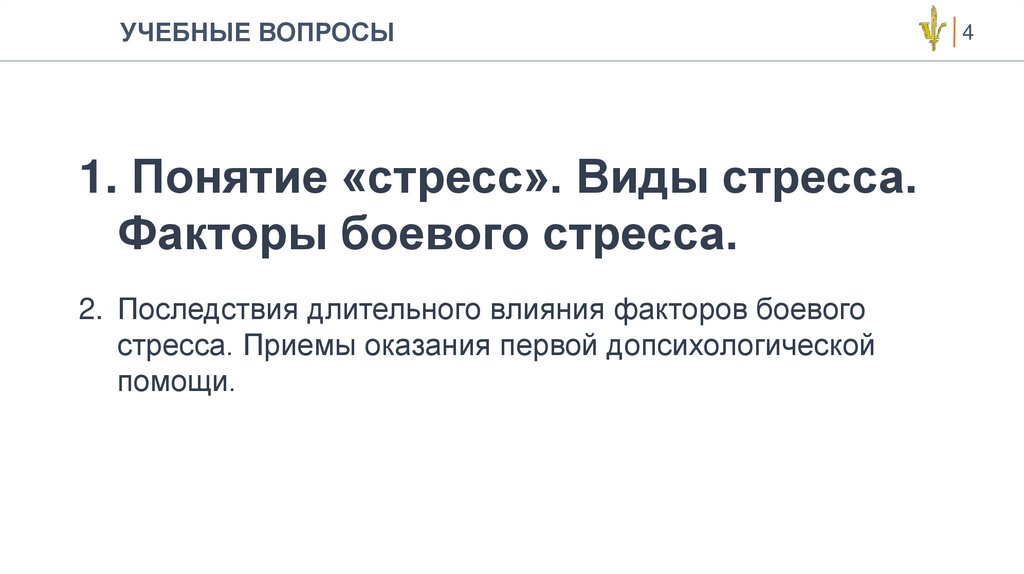 УЧЕБНЫЕ ВОПРОСЫ1. Понятие «стресс». Виды стресса.