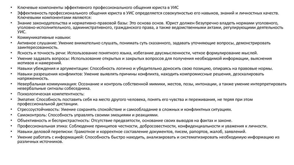 Эффективность профессионального общения юриста в УИС определяется совокупностью его навыков, знаний и личностных качеств.