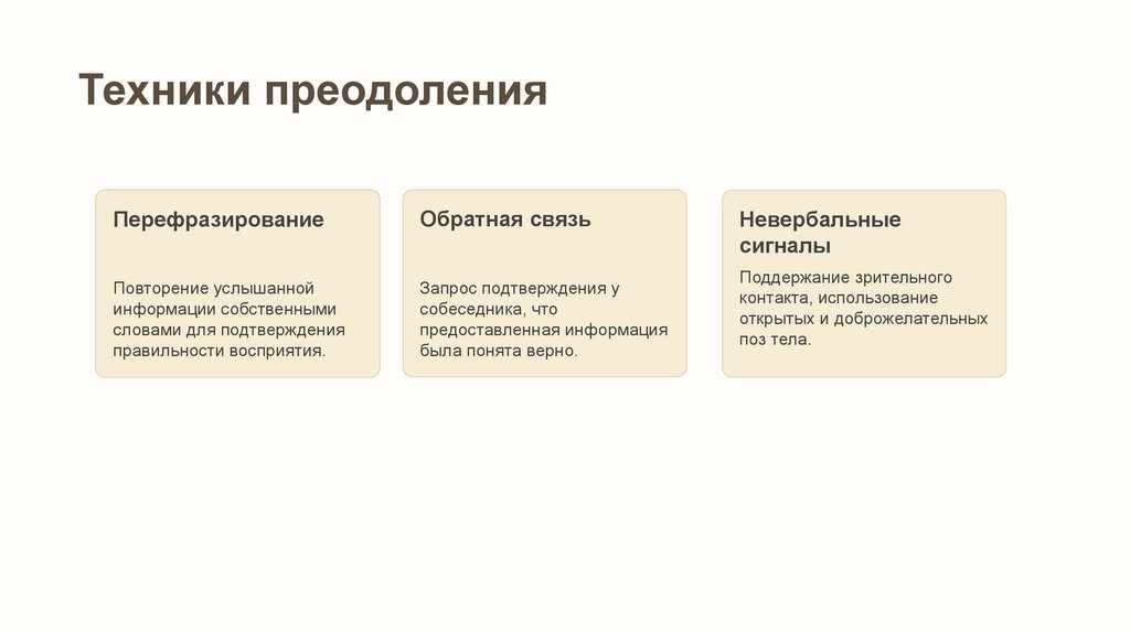 Важно добиваться полного и безоговорочного понимания информации собеседником, подтверждая это через диалог.