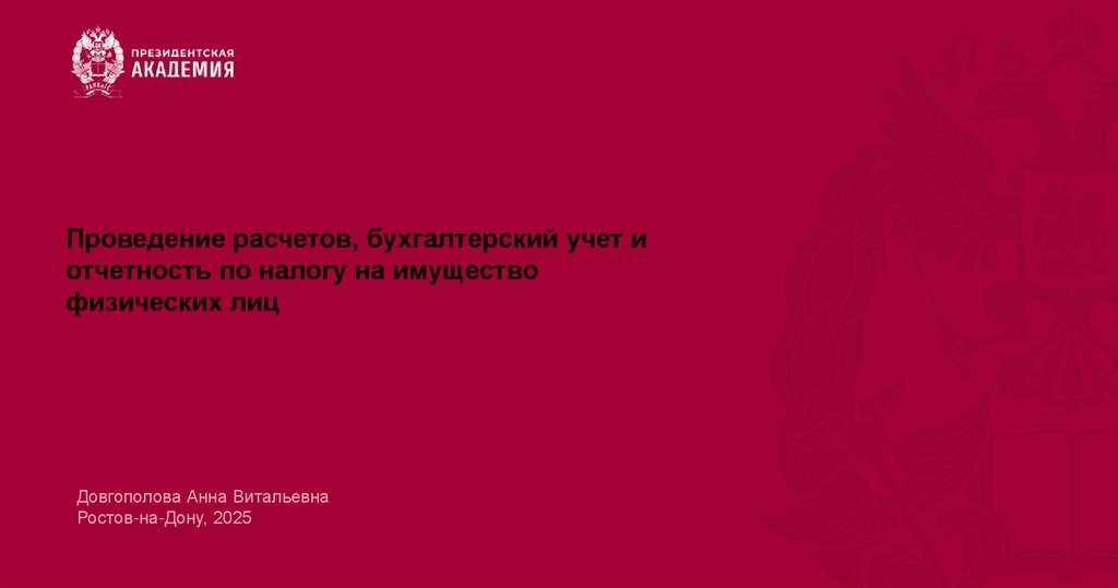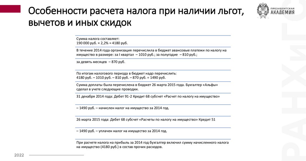 Проведение расчетов, бухгалтерский учет иотчетность по налогу на имущество